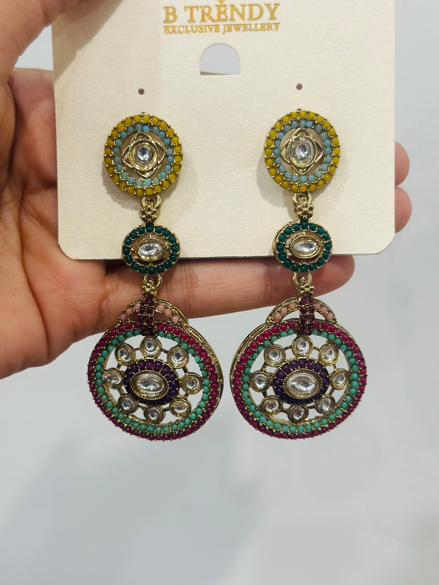 "Enhance your style with the Gauri multi earrings, featuring a statement design adorned with colorful beads. These versatile earrings add a touch of Western and ethnic fusion to any outfit. Expertly crafted with quality materials for a unique and stylish accessory."