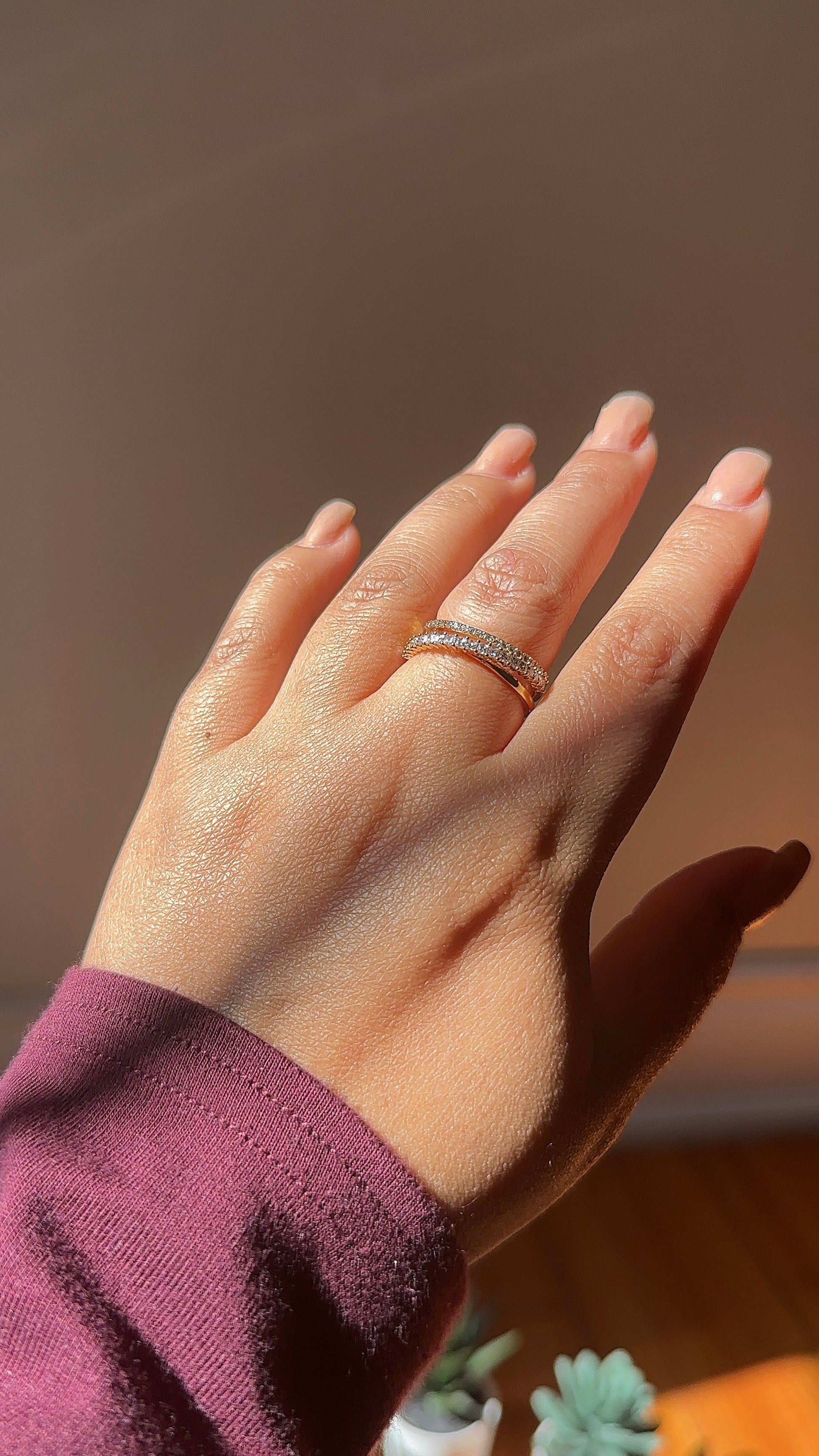 Expertly handcrafted with non-tarnish 18k gold plating, this knot ring features a stunning adjustable Swarovski crystal knot shape. Add a touch of elegance and sparkle to any outfit with this timeless piece.