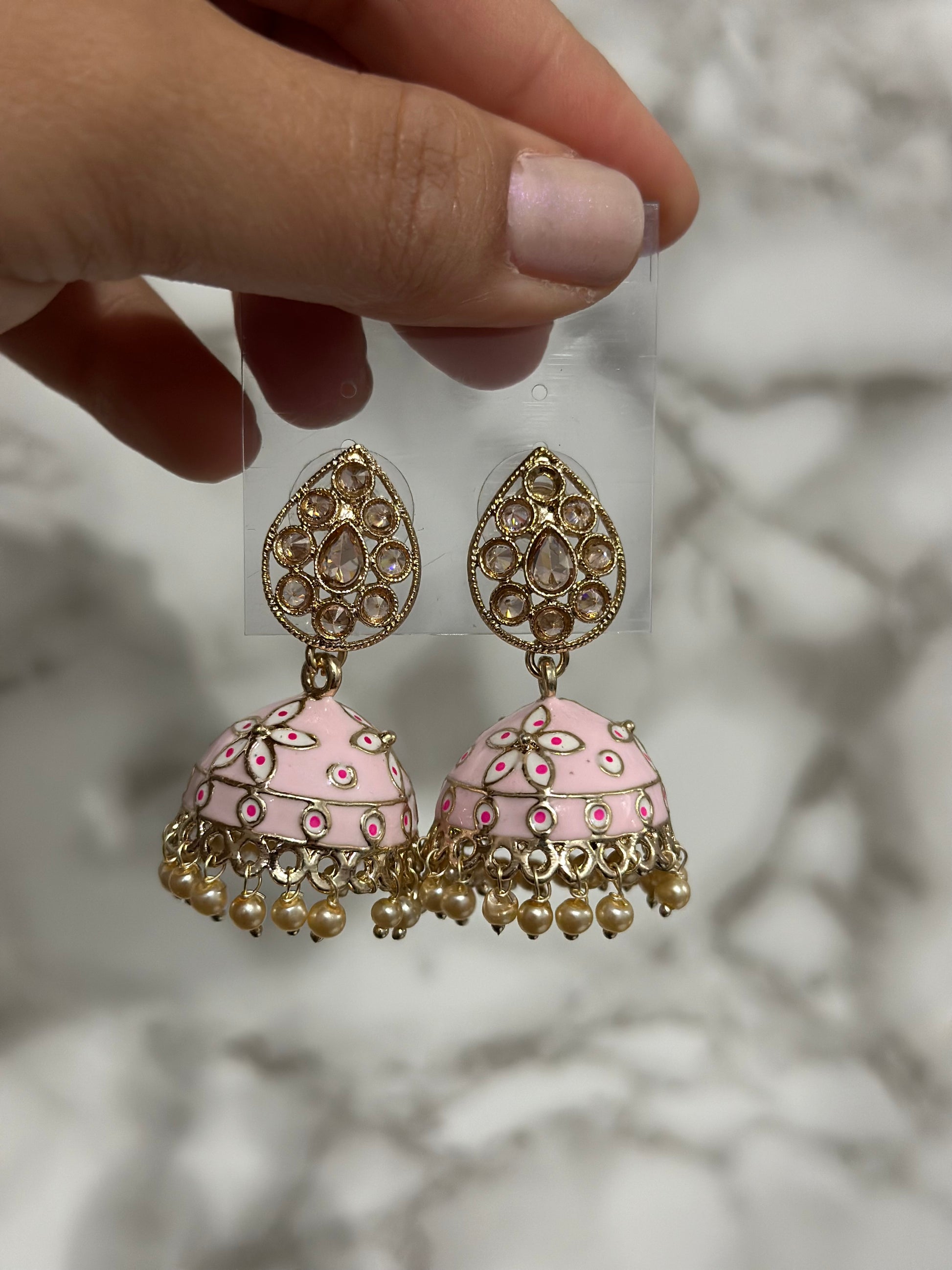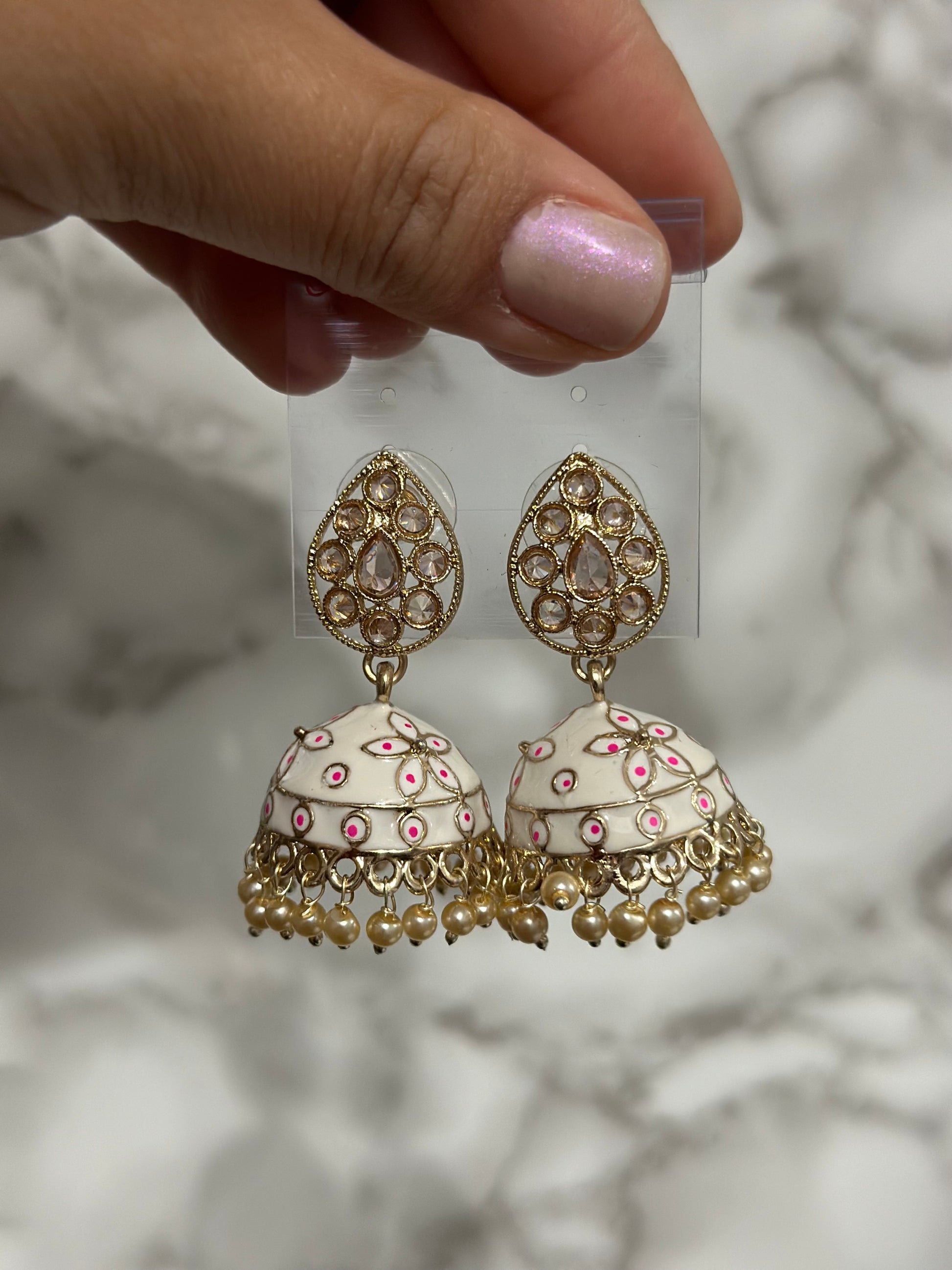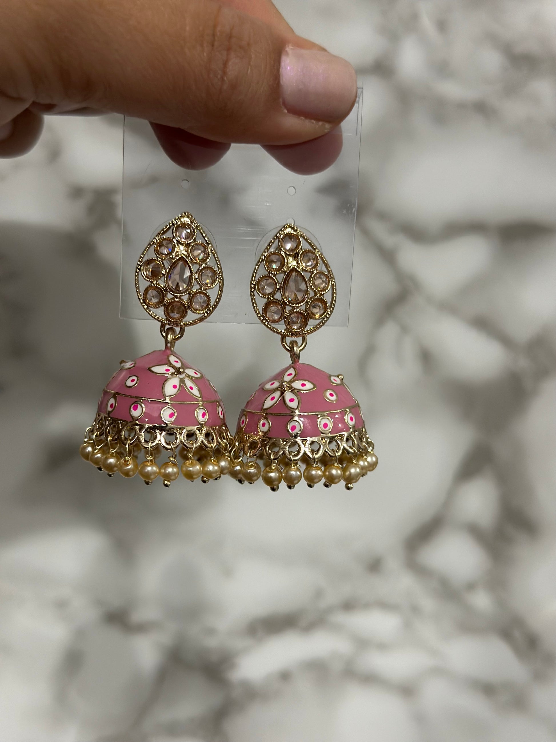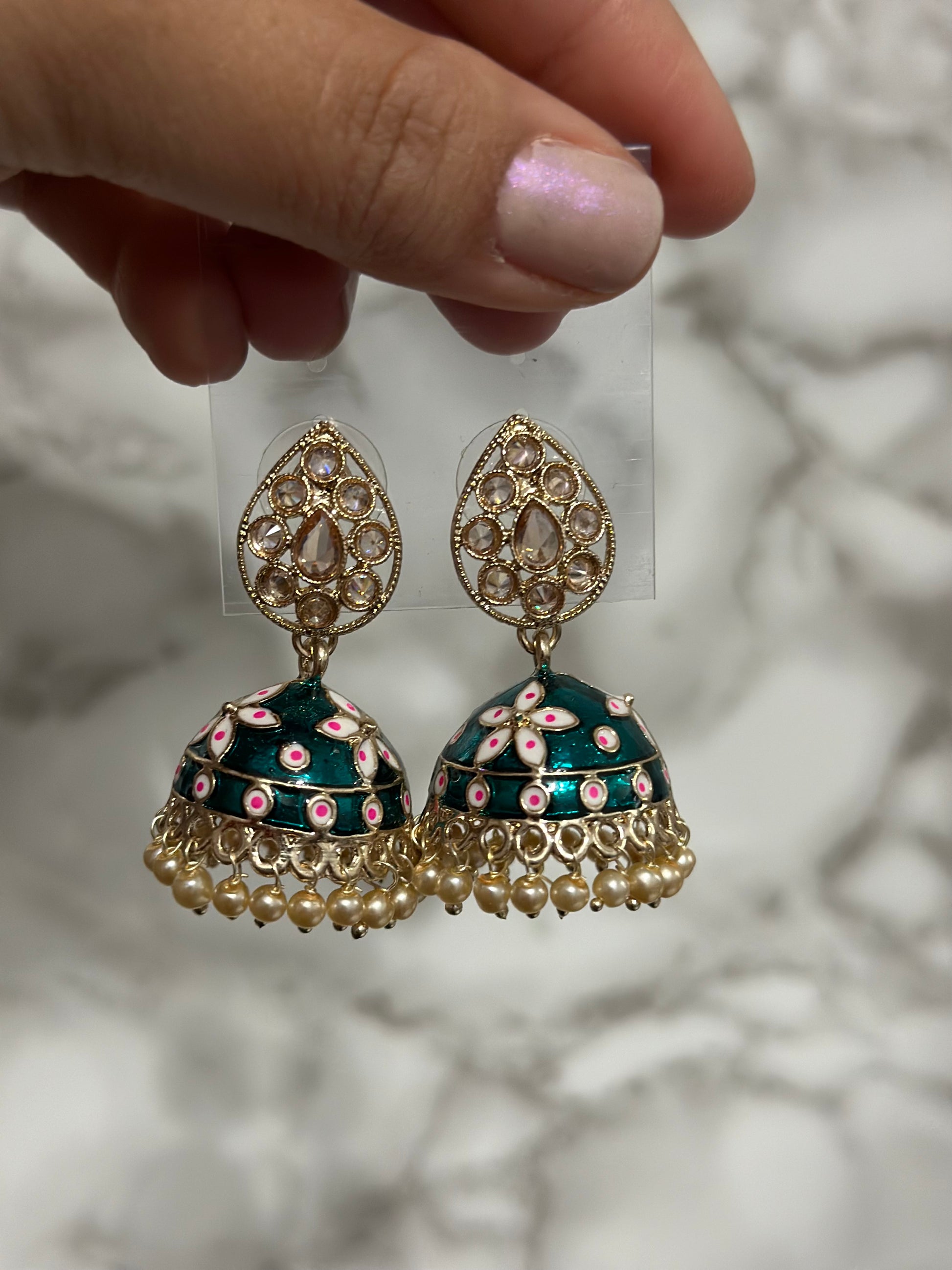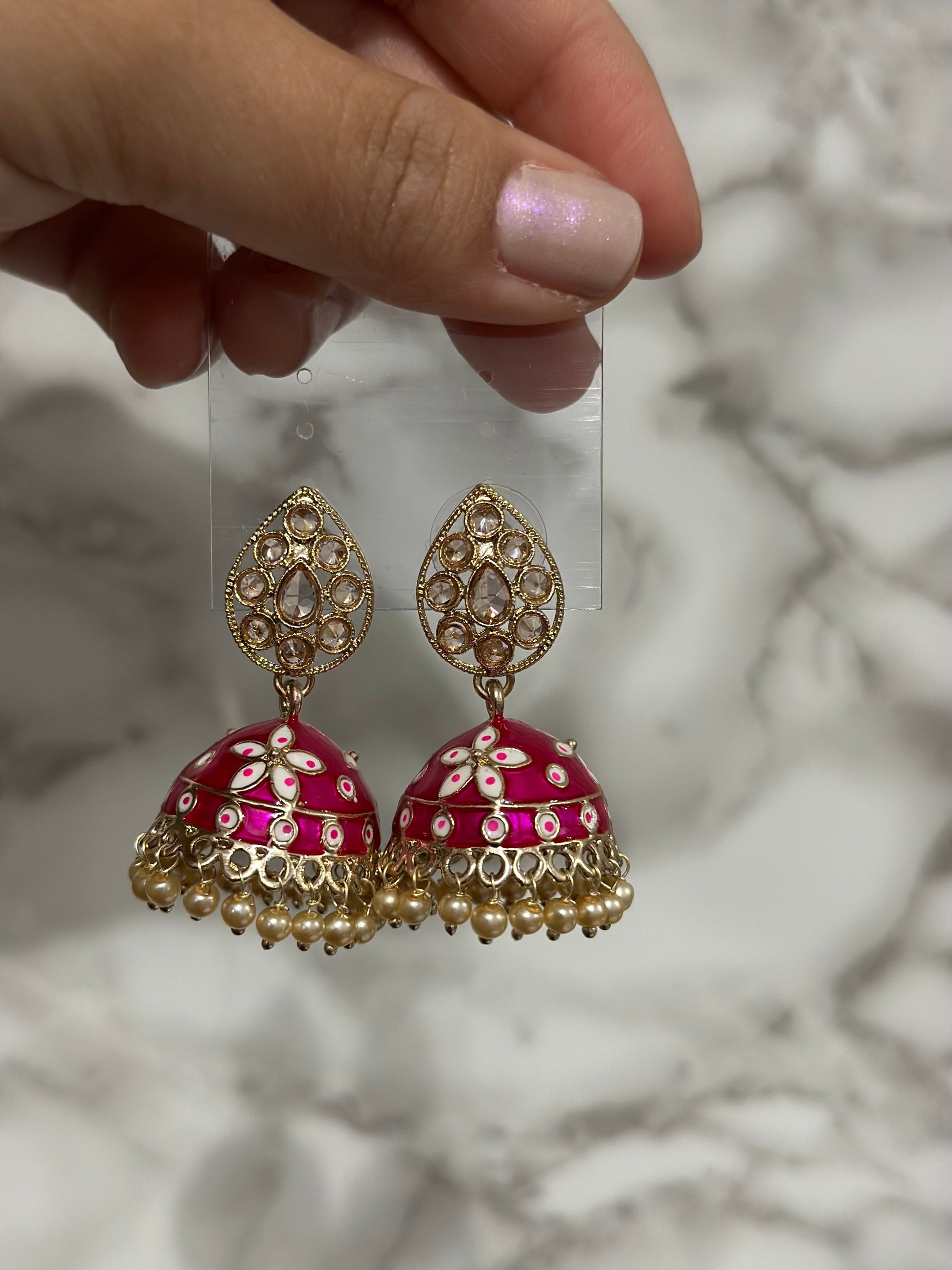 Expertly handcrafted with stunning meenakari and polki elements, these lightweight jhumki earrings add a touch of traditional beauty to any outfit. Delicately designed with vibrant colors, these earrings are the perfect accessory for any occasion. Exquisite craftsmanship and intricate details make these earrings a must-have for any jewelry collection.