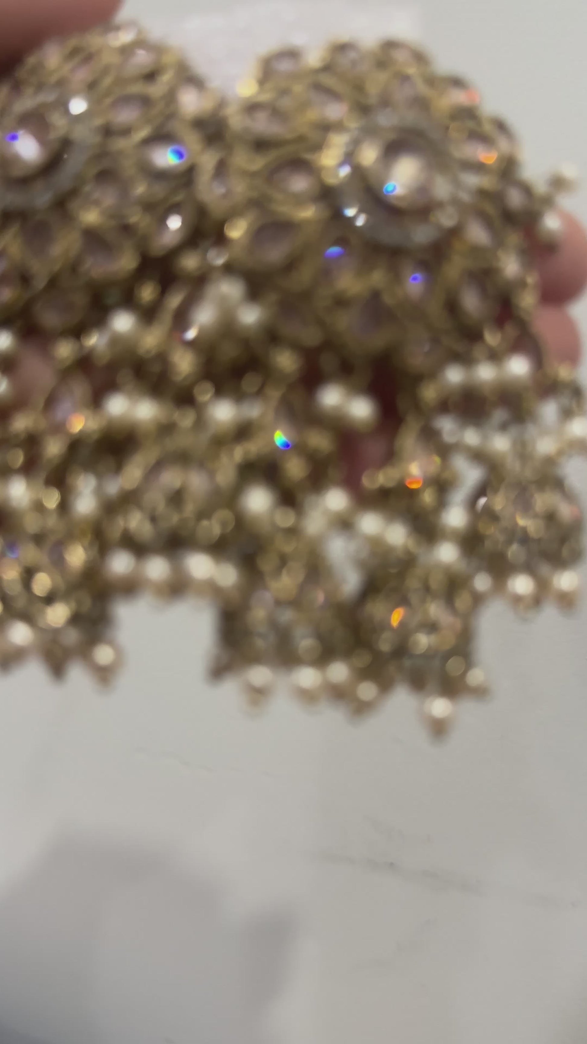 Elevate any occasion with our exquisite Poonam polki earrings in gold. Handcrafted with high quality polki and precious stones, these earrings are the perfect accessory for adding a touch of elegance and luxury to your look. Elevate your style with these beautifully designed earrings.