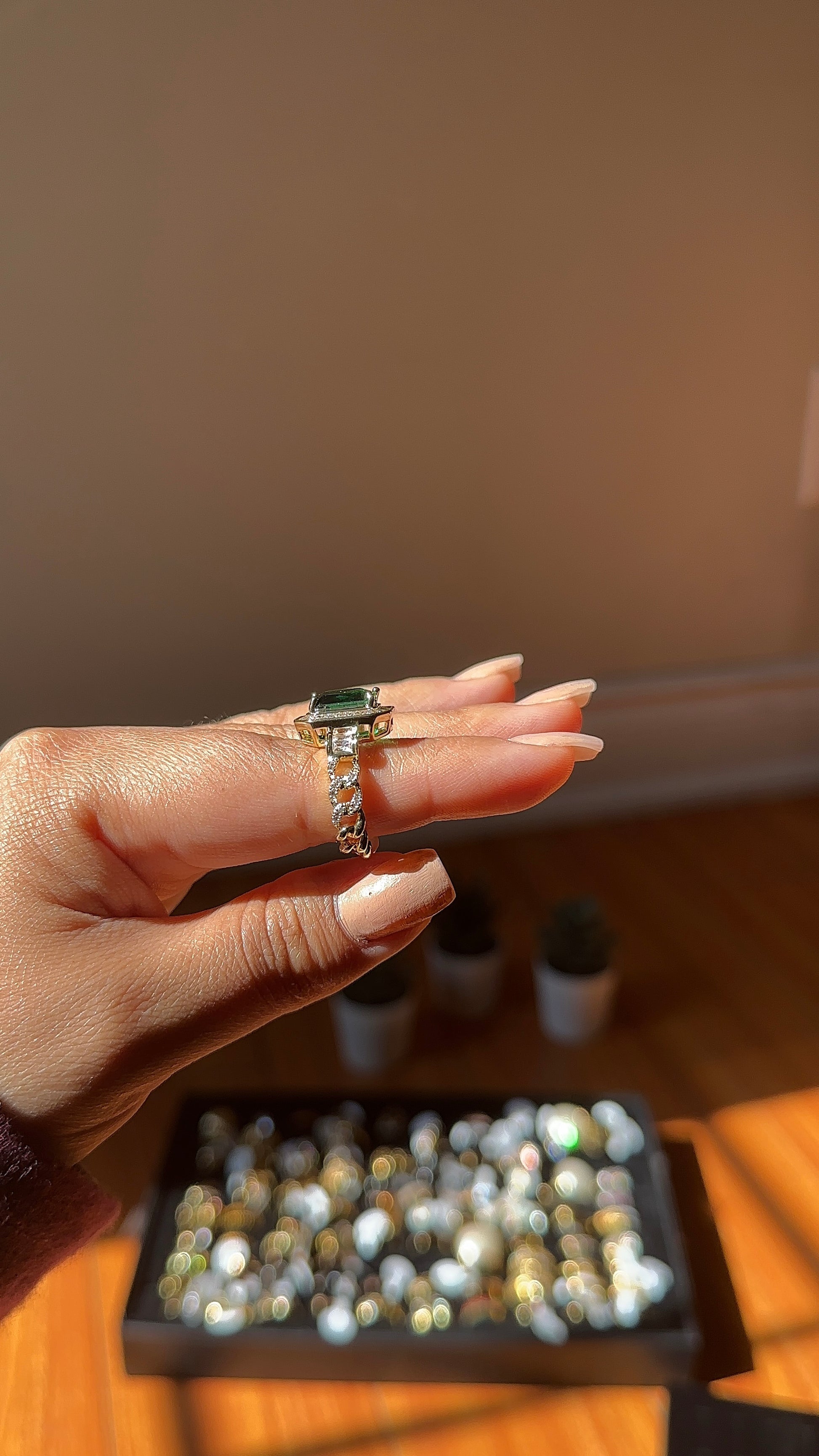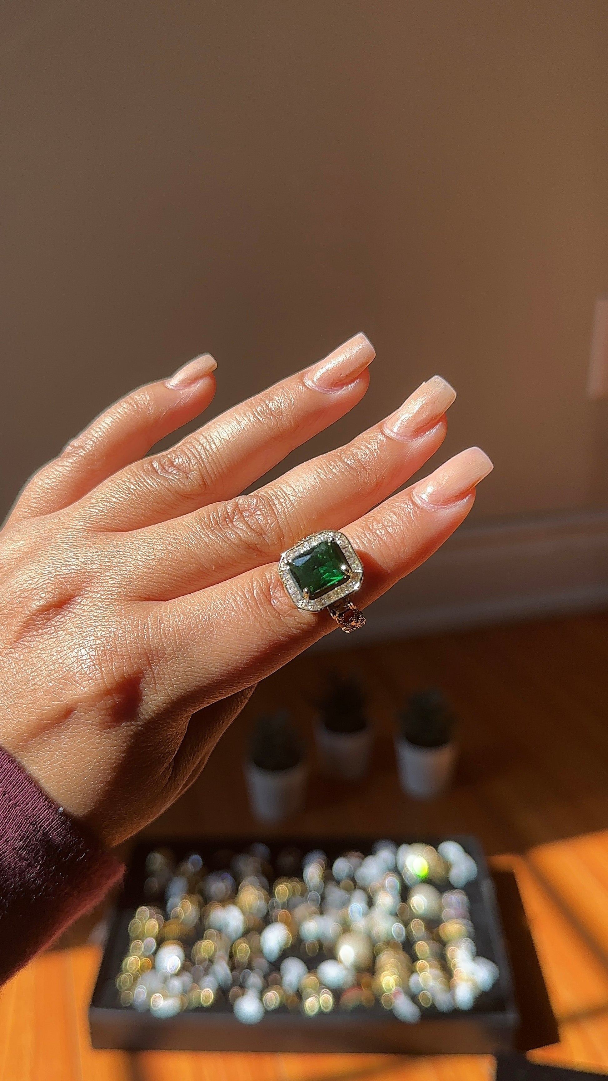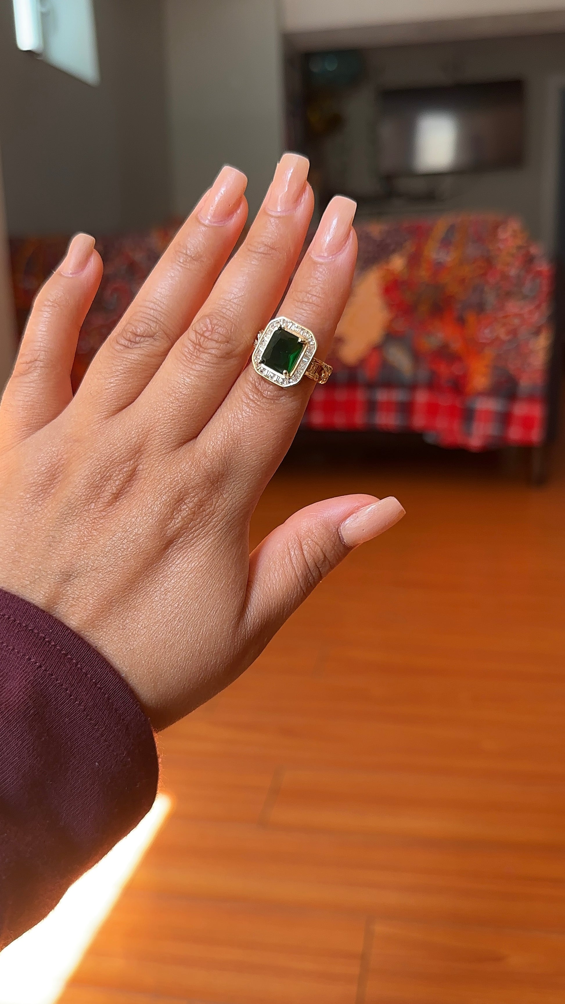 Elevate your party attire with our Regal Emerald necklace. Crafted with nontarnish 18k gold plating, this elegant piece features stunning emerald stones and sparkling Swarovski crystals. Guaranteed to add a touch of sophistication to any look. Size is adjustable.