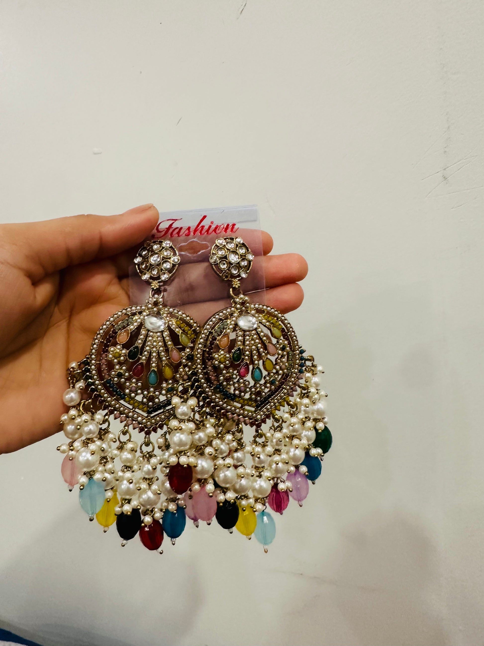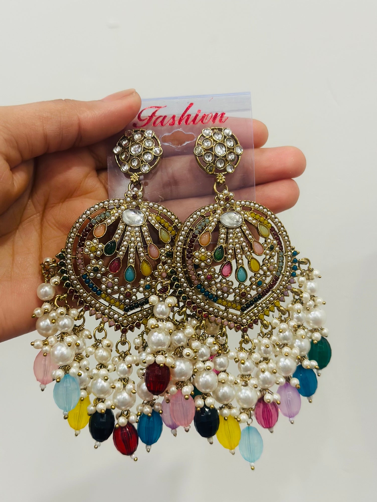 Introducing Riti - Multi Earrings, the perfect statement piece for any outfit. With its elegant and girlish design, these lightweight earrings provide a heavy look without weighing you down. Stand out with its stunning multi-colored design. Elevate your style with Neha Earrings.