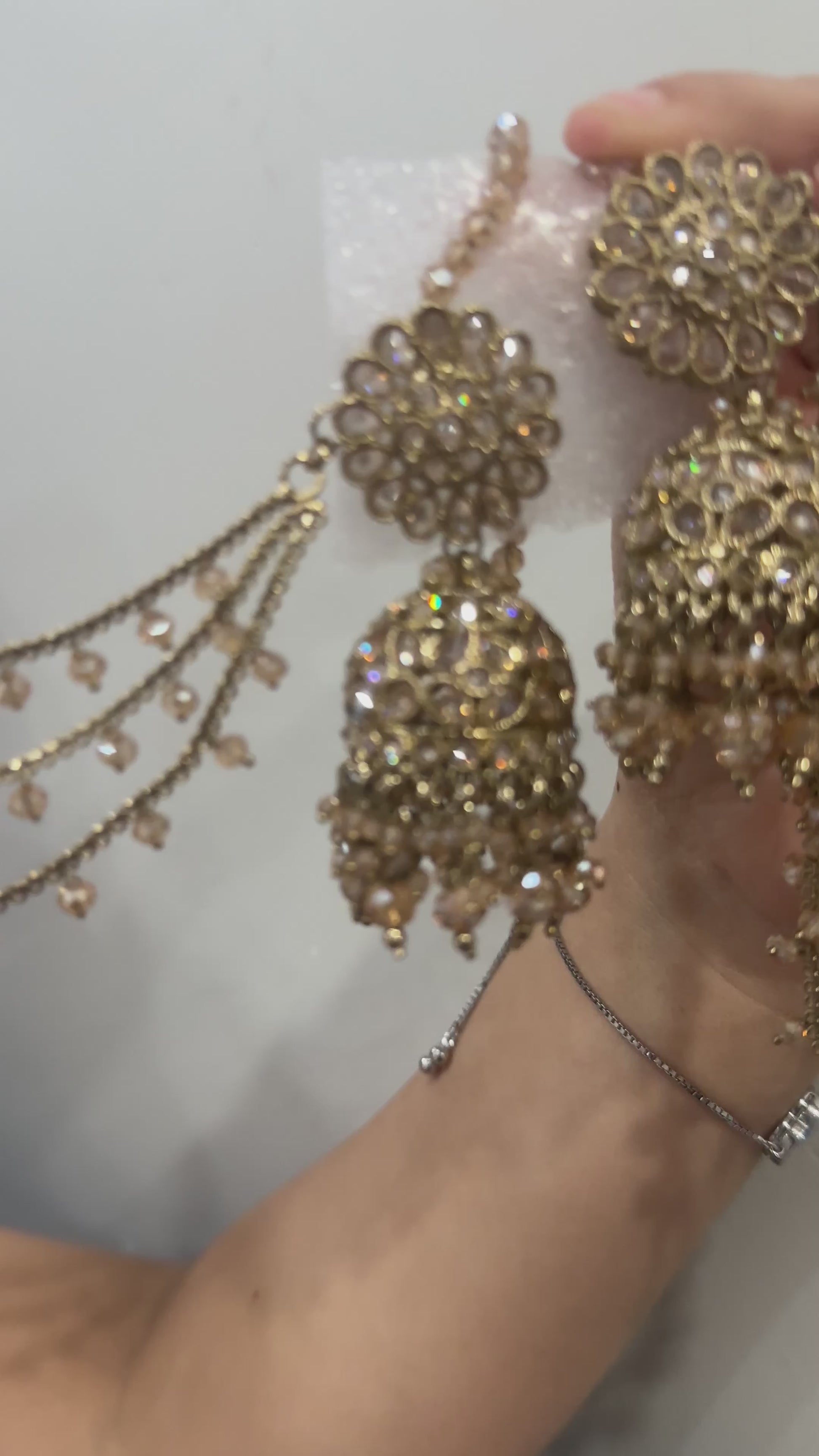 Expertly crafted with premium quality polki, these Suhana bahubali jhumkis feature elegant pearls and a sahara jhumki design. Perfect for any occasion, these earrings add a touch of sophistication to any outfit. Elevate your style game with these stunning statement pieces.