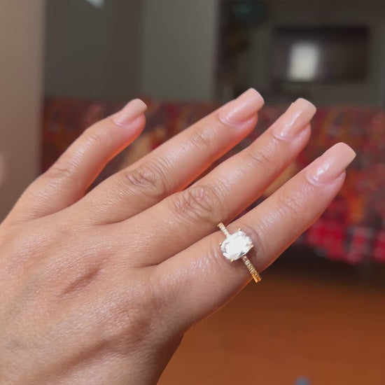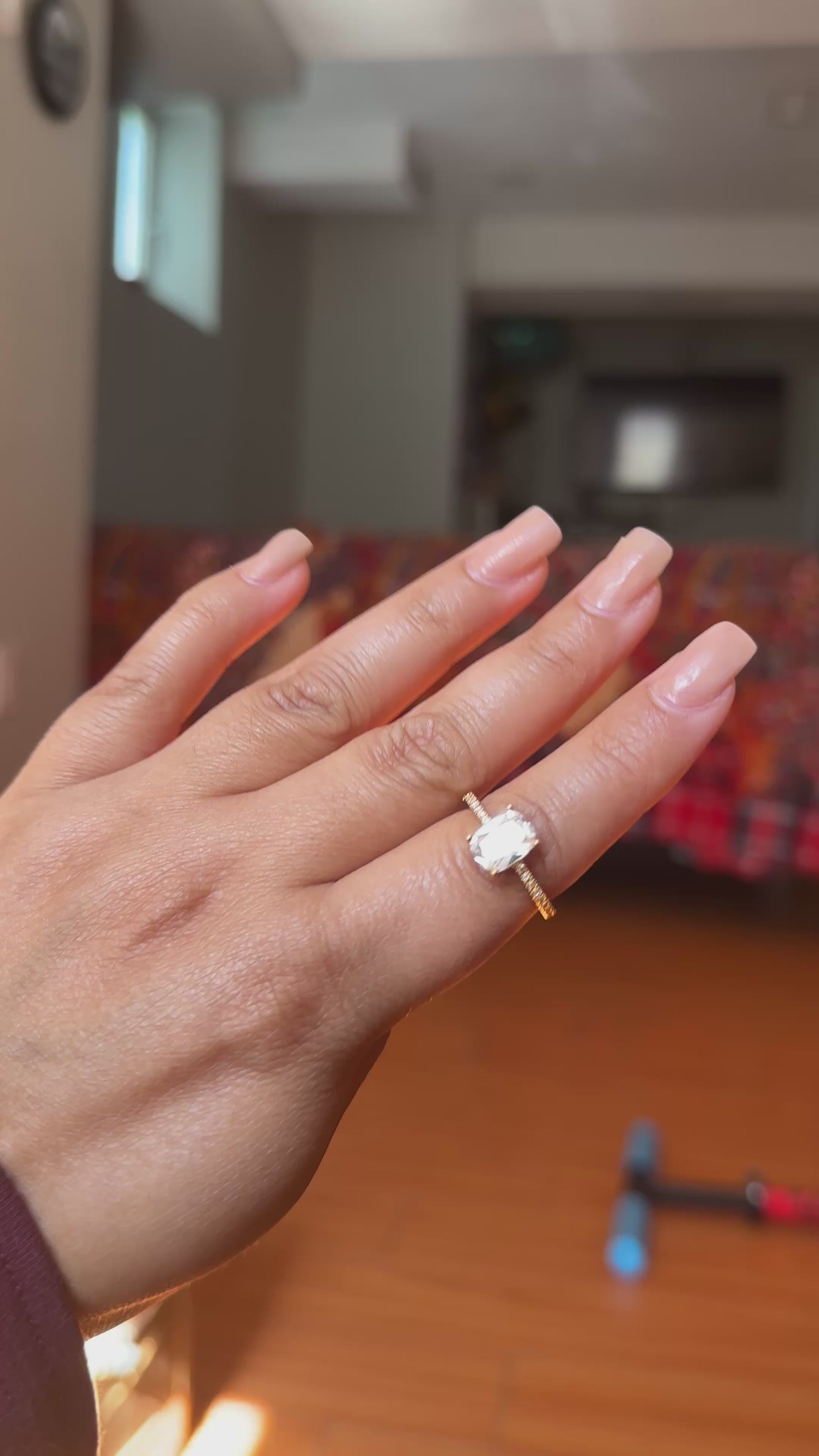 "The Twinkle ring is a stunning, non-tarnish solitaire ring featuring a big emerald stone. It is the perfect choice for wedding or engagement rings, offering a luxurious and durable alternative at a fraction of the cost."
