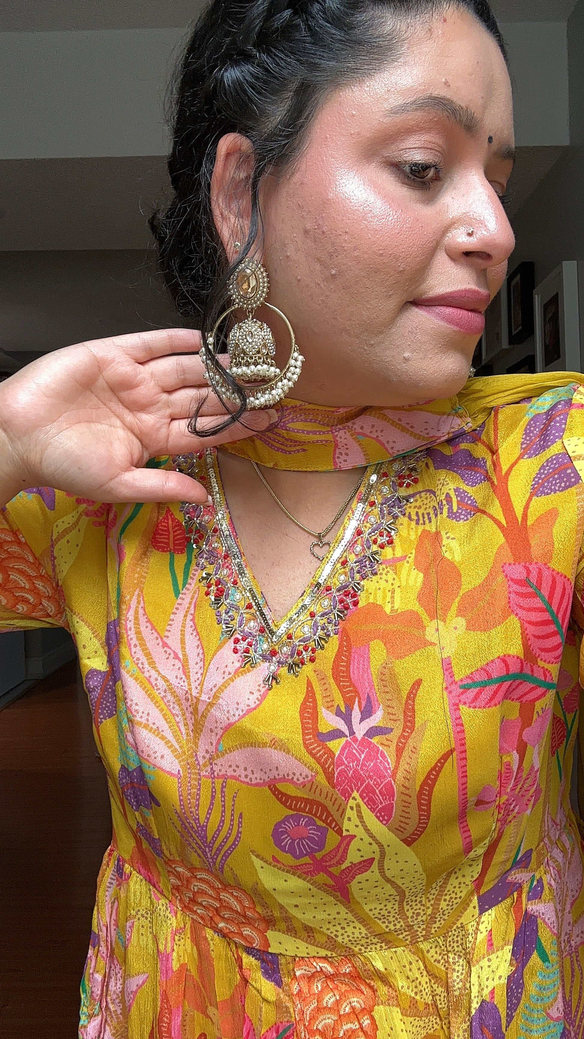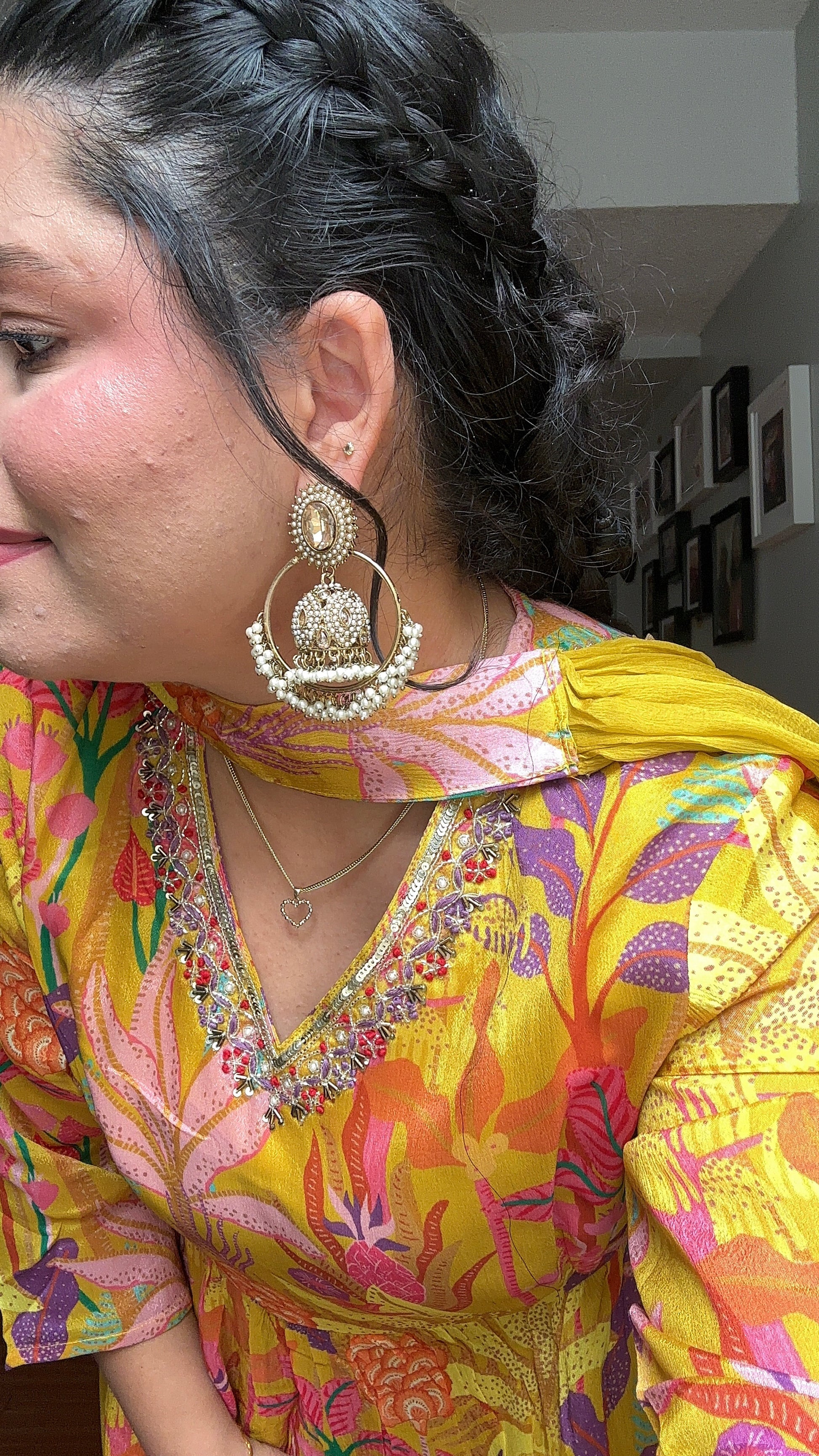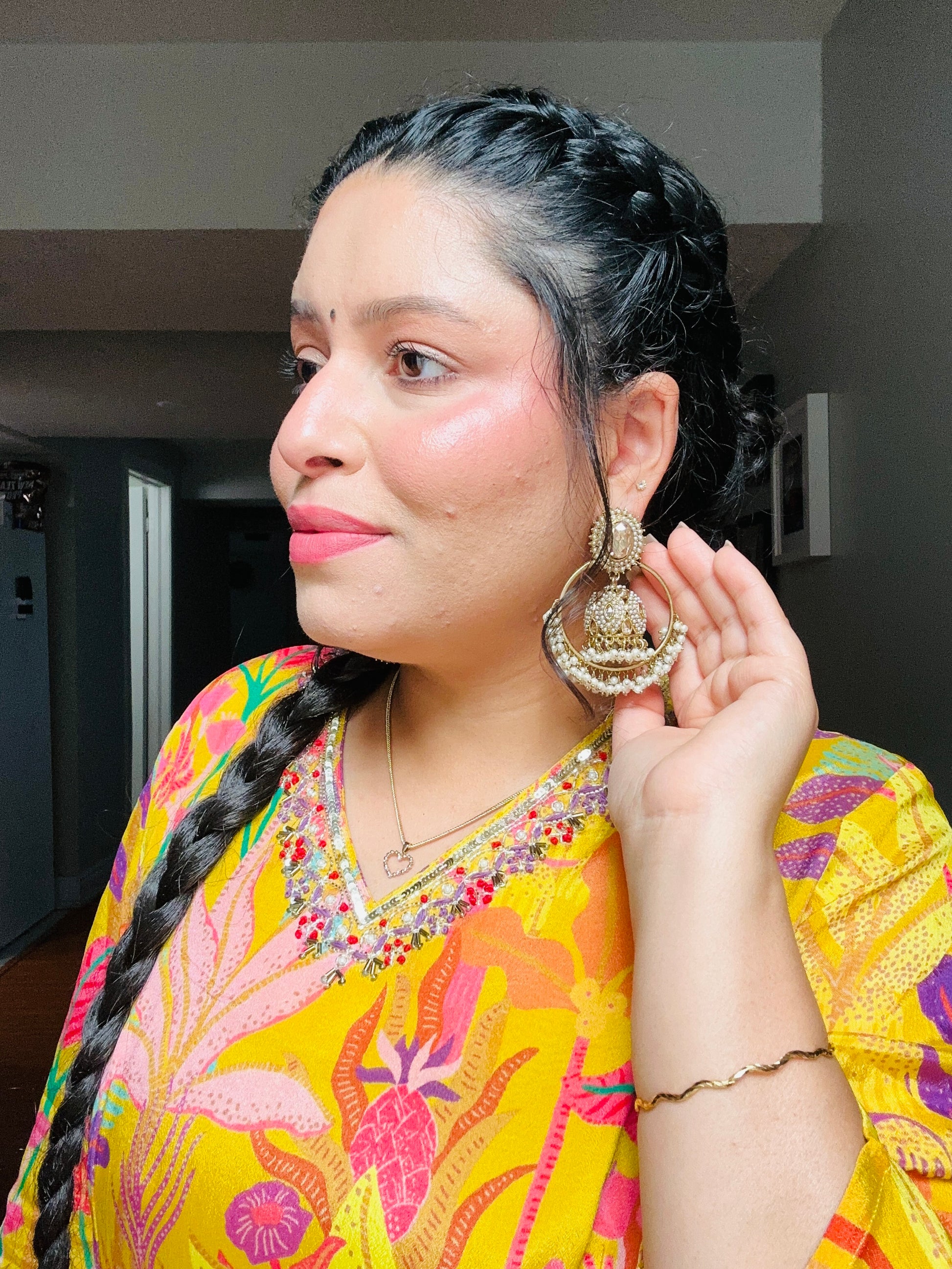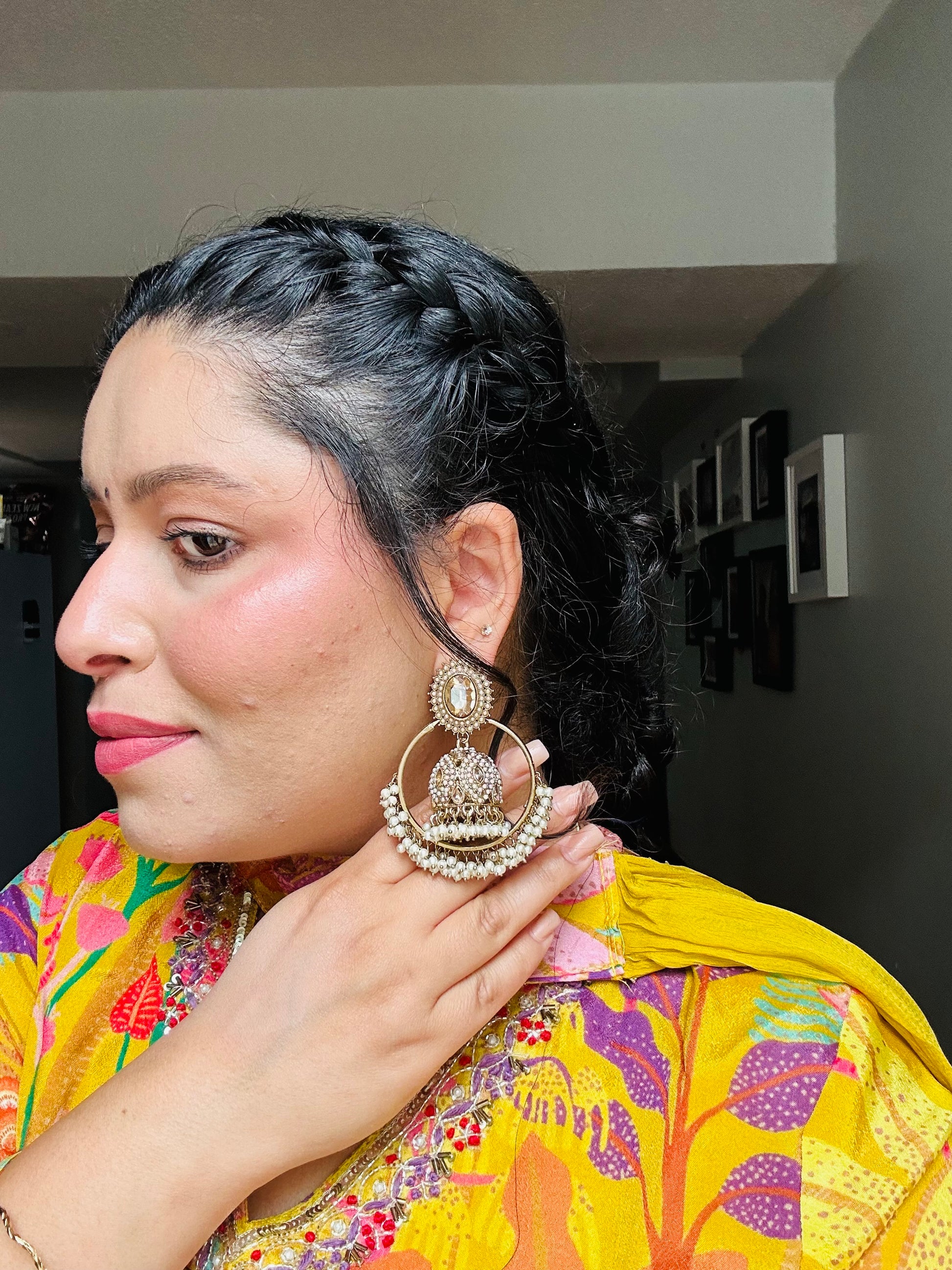 Introducing the versatile Chandbaali 3 in 1 jhumki and baali. This stunning piece offers both jhumki and baali styles in one, making it easy to switch up your look. Crafted with precision and intricate design, this accessory will elevate any outfit. Experience the benefits of versatility with this unique piece.